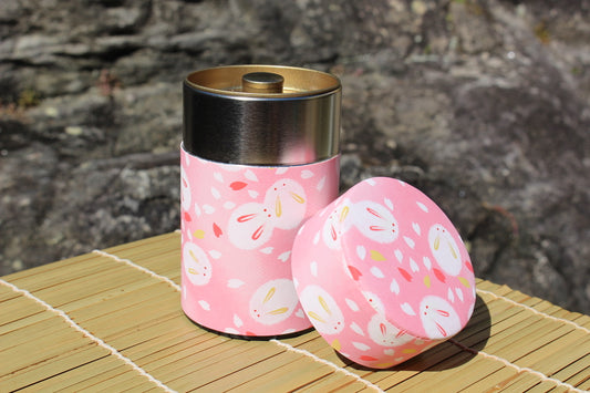 Kotodo Japanese Washi Paper Wrapped Tea Tin Canister - Long 100g (3.5oz) Bunnies in Pink (#23)