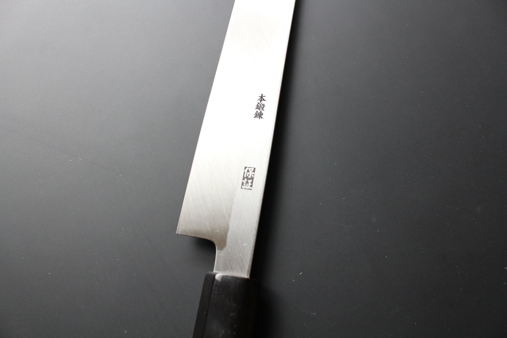 White Steel No.2 is a high carbon steel developed by Hitachi Special Stainless Steel. This steel is standard and most commonly used for Japanese style knives such as Sashimi and Deba knife for long time. White Steel No.2 gives a very sharp edge and has very good edge retention. It is also very easy to re-sharpen. It will rust if it is left wet or left in contact with something containing any amount of moisture, so need to wipe and dry completely after using. For longer storage protect with a film of oil to avoid lasting. Recommended for first time of Japanese style high carbon steel knife users.