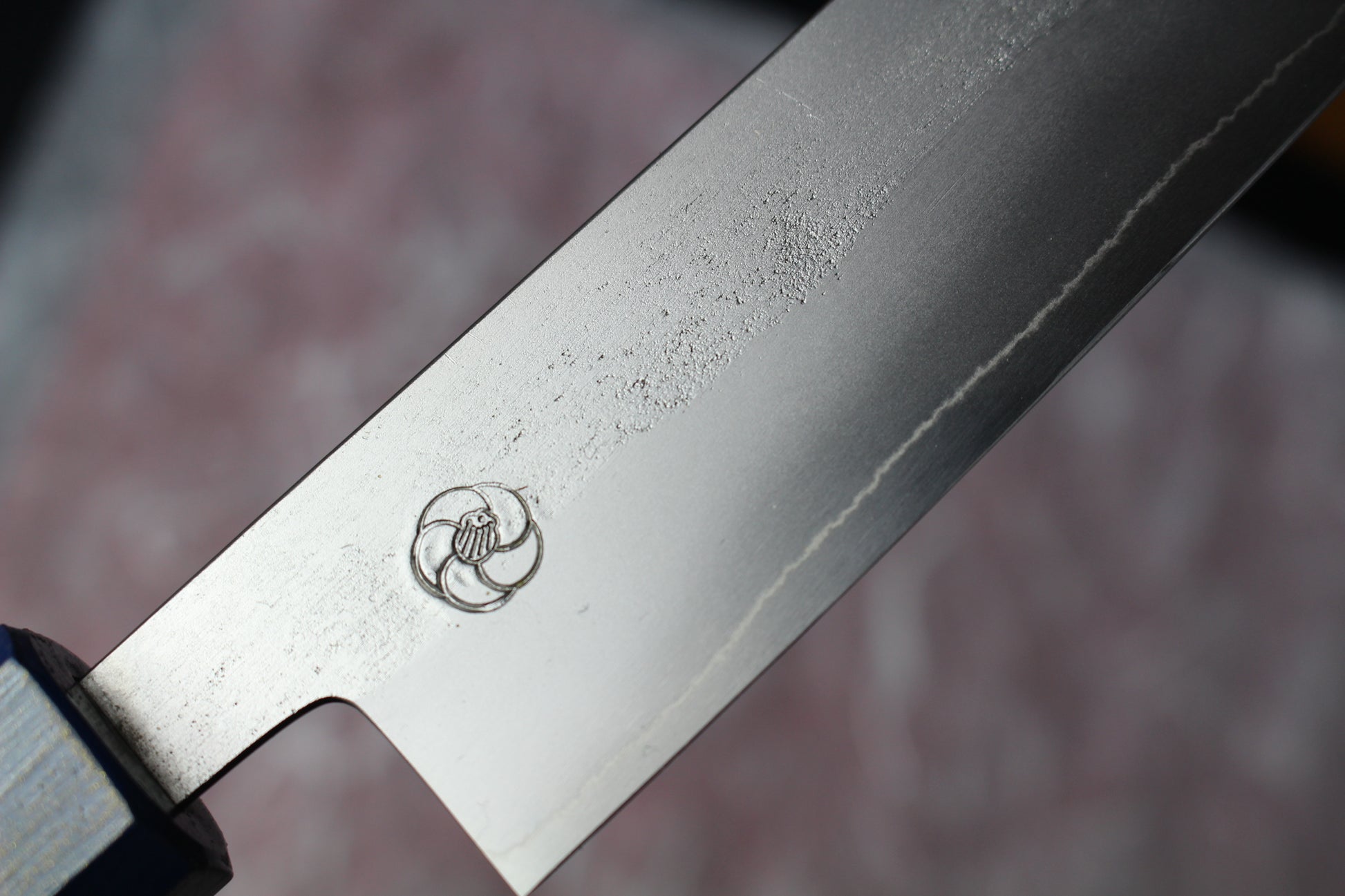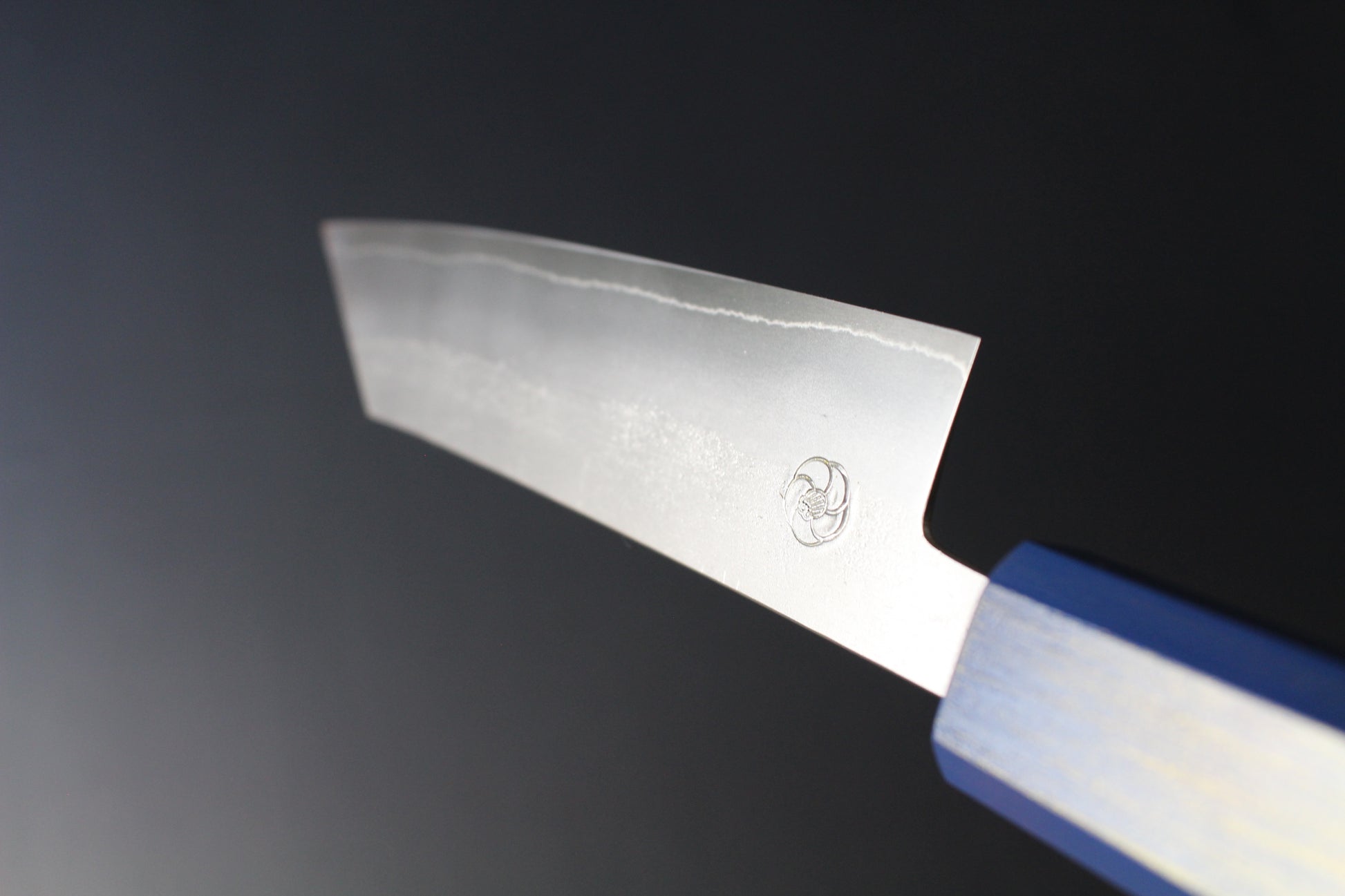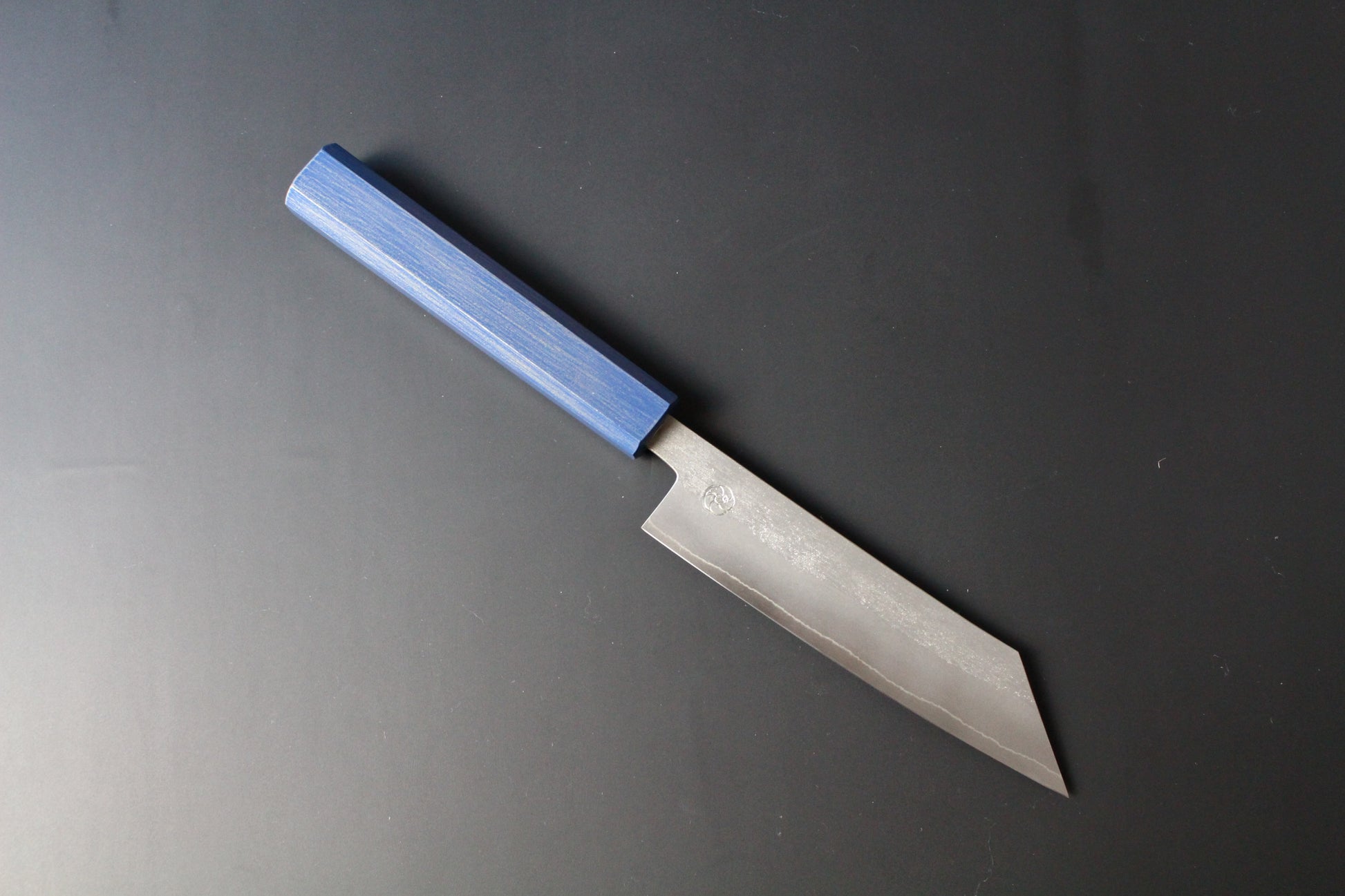 Haruki Miyazaki - Ginsan Petty Knife 150mm with blue urushi lacquered handle