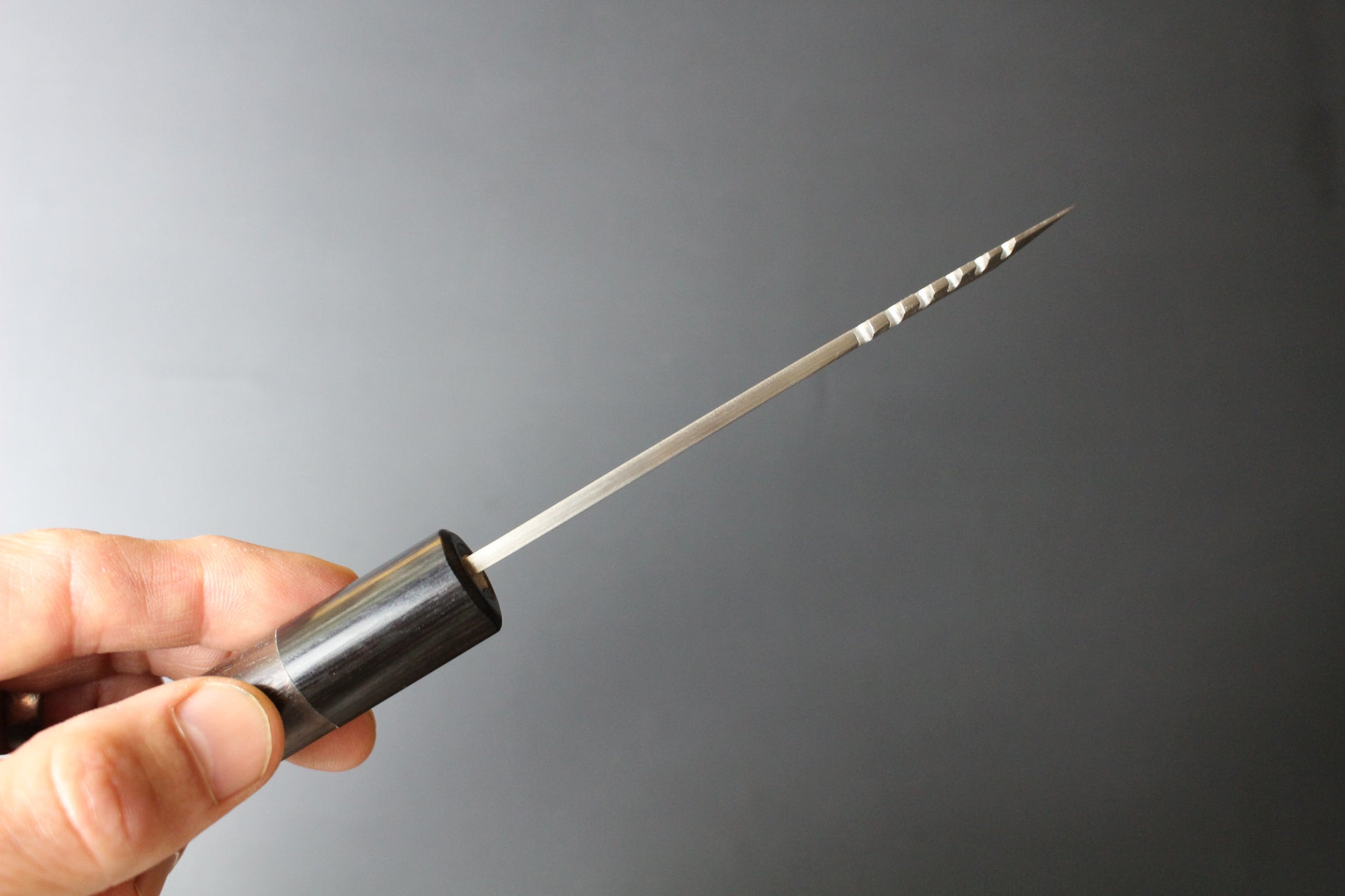 The knives made in Echizen city are called Echizen Uchi Hamono. The art of making Japanese kitchen knives has a history of about 700 years. Blacksmith Hideo Kitaoka is a traditional craftsman who is the third generation in Kitaoka Hamono. He is the specialist of traditional Japanese single bevel knives such as Deba knife and Sashimi knife. He has a lot of fans all over the world.