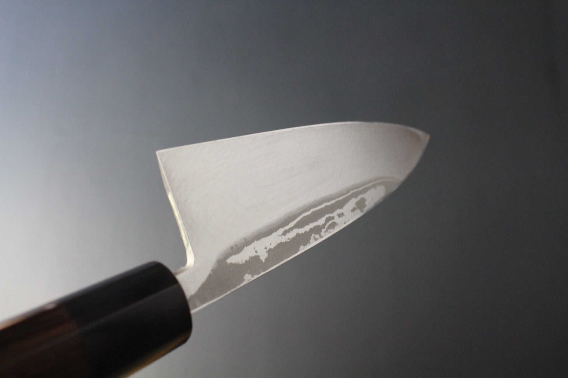 Deba Knife is a traditional Japanese single beevel Knife. It is used for filleting fish. Also it can be used for butchering meat and poultry too. Because the blade is thick and heavy, It could be good for cutting through fish bones, chicken bones, crab or other seafood. Deba Knives range from 100mm to 240mm in length of the blade and different lengths offer different benefits. Generally blade length between 150mm and 195mm is popular. Since it has single bevel, there are different shape for right hander and left hander.