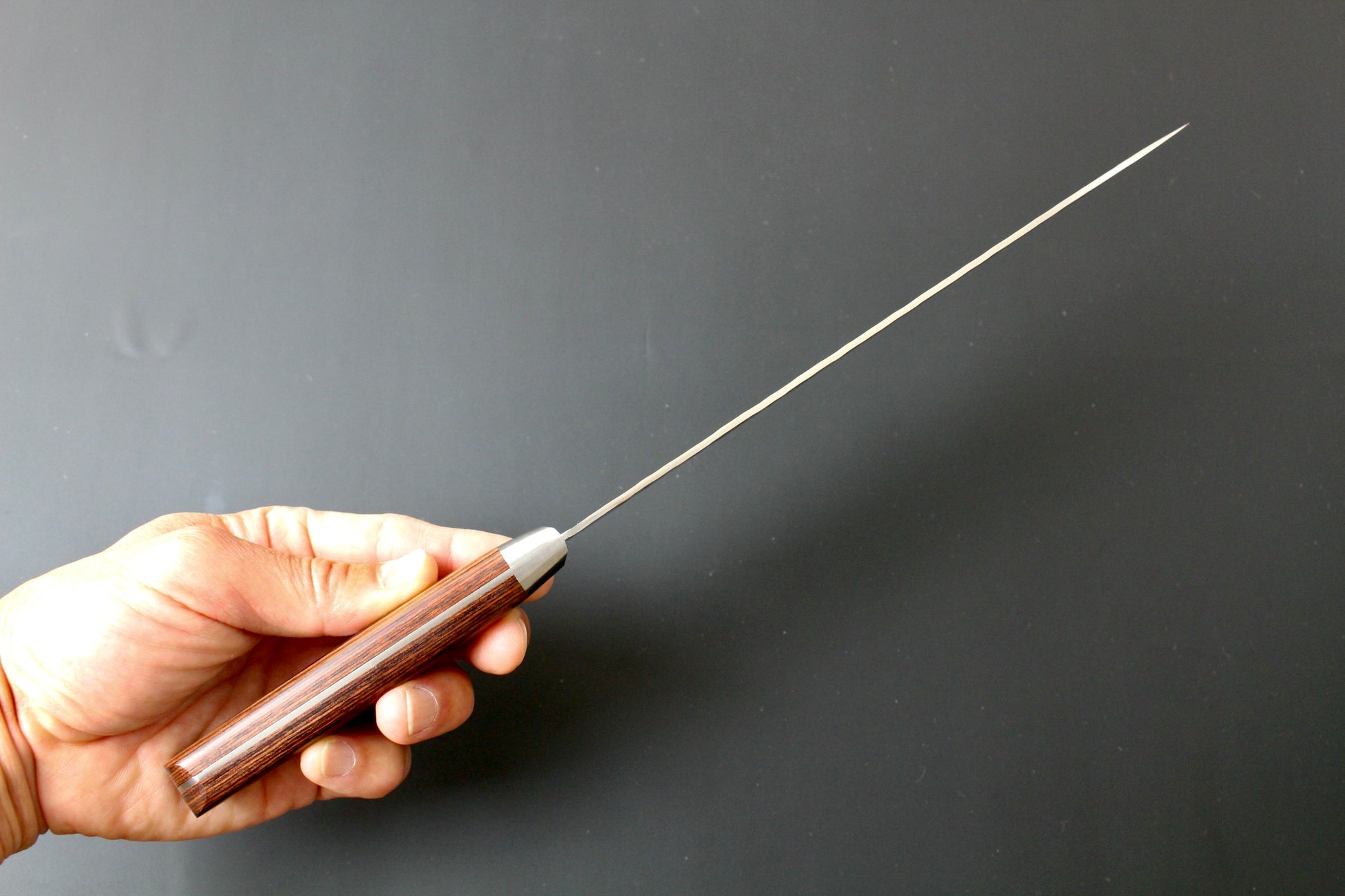 Gyuto Chef knife is the ultimate all-purpose knife for use in your home and commercial kitchens. It can be used for cutting, chopping, slicing, dicing, filleting meat, vegetables and fish. Gyuto knife does pretty much most of the jobs in a kitchen by itself. Gyuto can range from 180mm to 270mm usually. The most popular for home use is 180mm or 210mm as this gives the best balance of length and weight for small spaces and 240mm is more common in commercial kitchens.