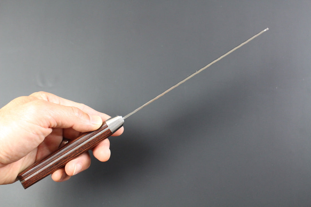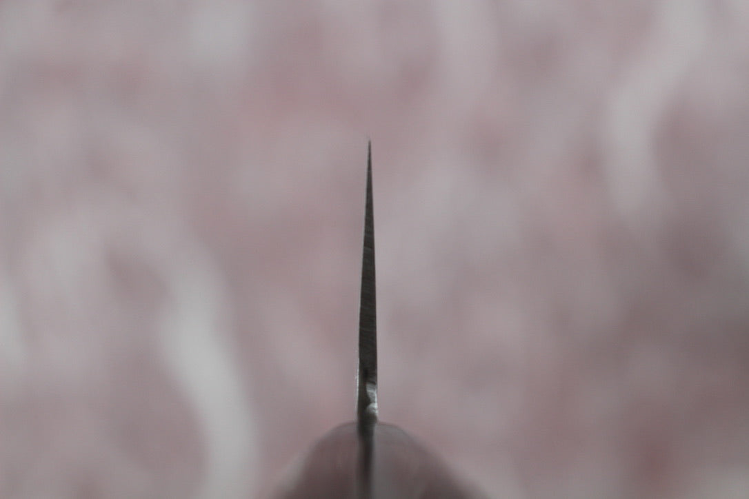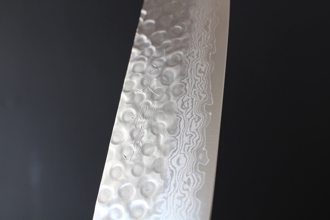 Nakiri knife means "cutting vegetables" in Japanese and is well designed for this purpose. Nakiri has a very thin & almost straight blade which can cut foods evenly from heel to tip so it is easy to chop vegetables. Before Santoku knives become popular, Nakiri was generally used as a common kitchen knife for home cooks in Japan.
