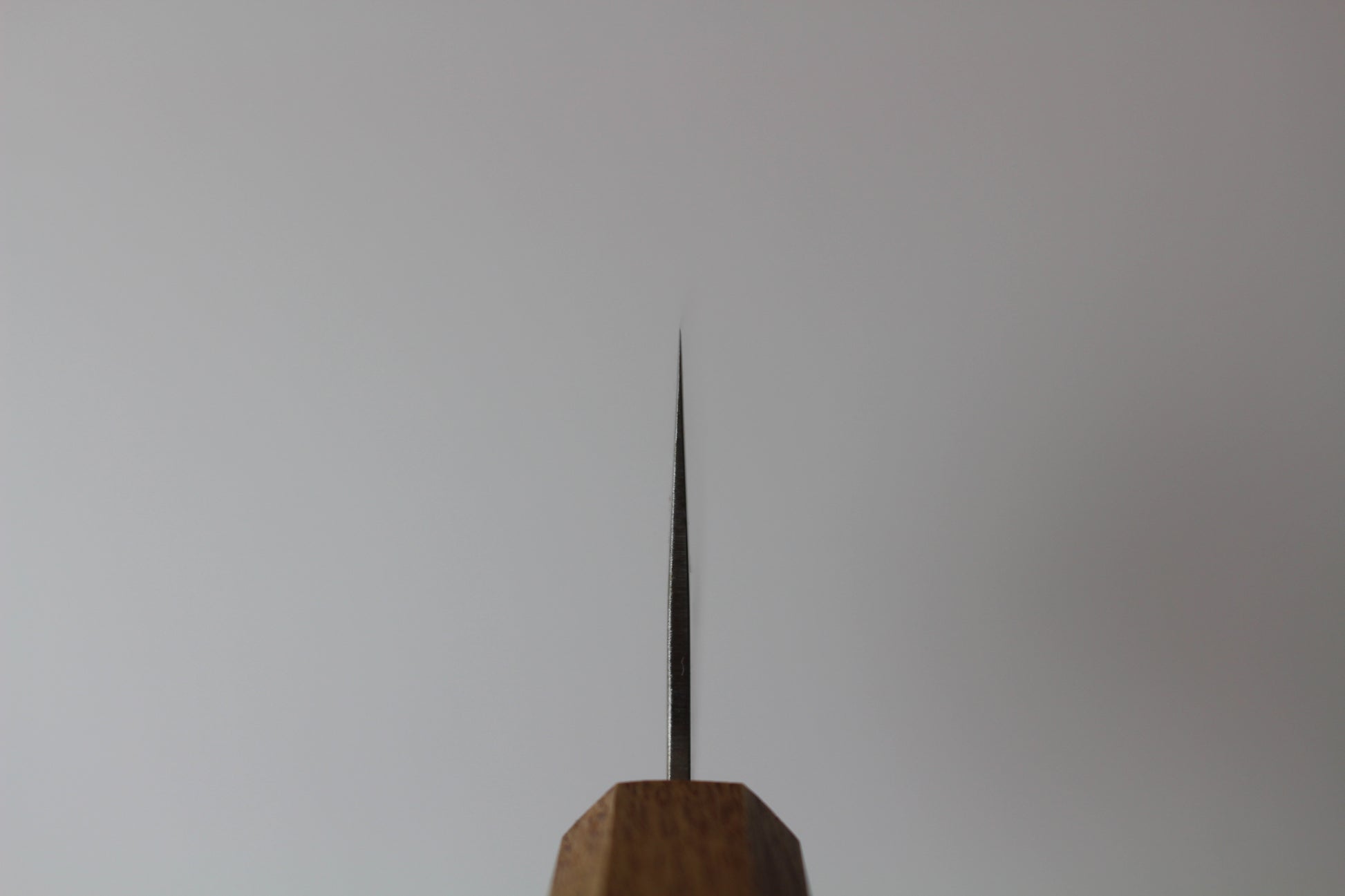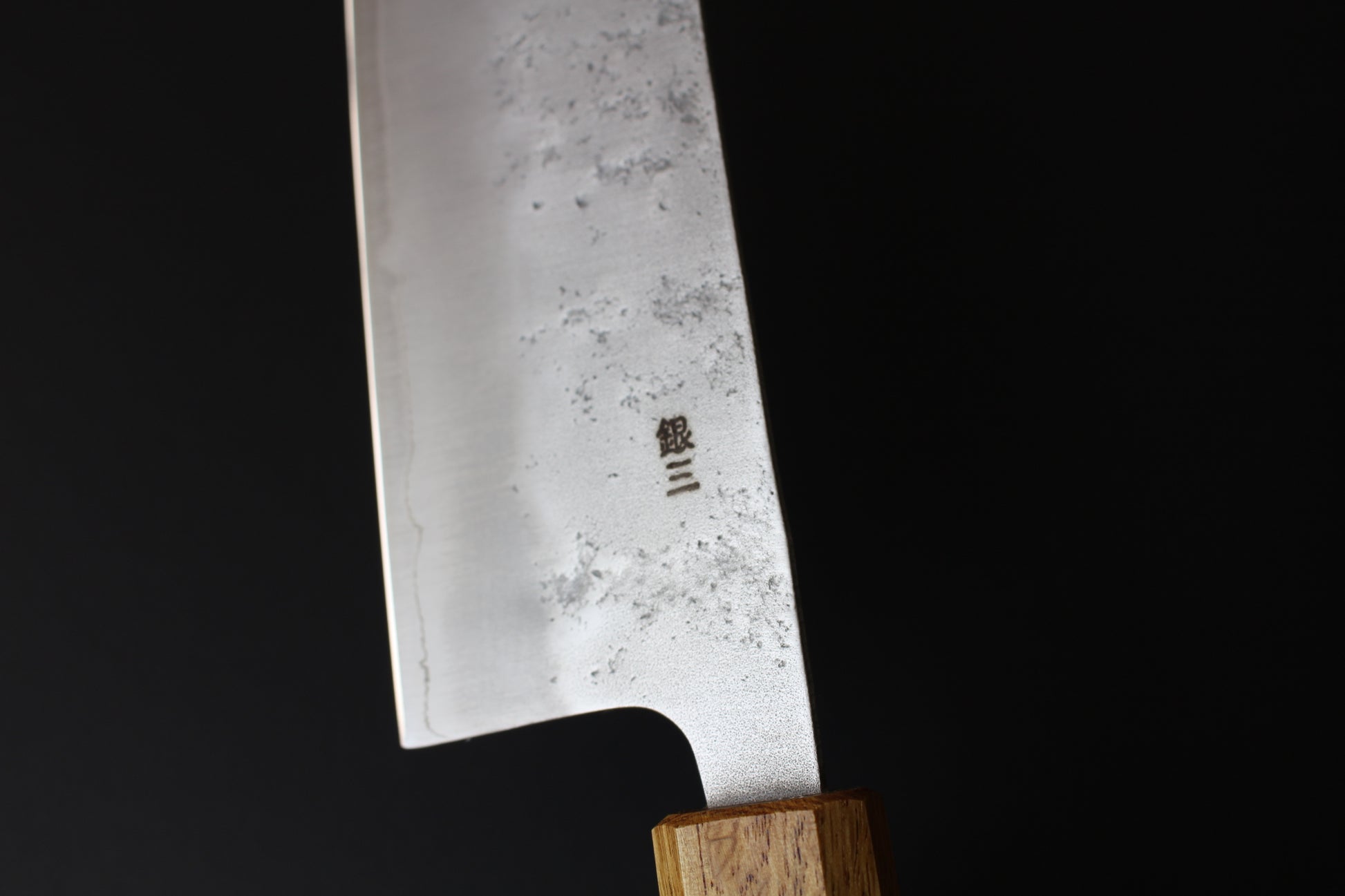 Gingami No.3 (Silver Paper No3, Ginsan) is a stainless steel developed by Hitachi Special Stainless Steel. It is a very fine and pure steel for making knives. It has excellent hardness, durability and Rust/ corrosion resistance. Gingami No.3 gets a very sharp edge and it has good edge retention similar to Carbon Steel. It can be easy to resharpen this steel.