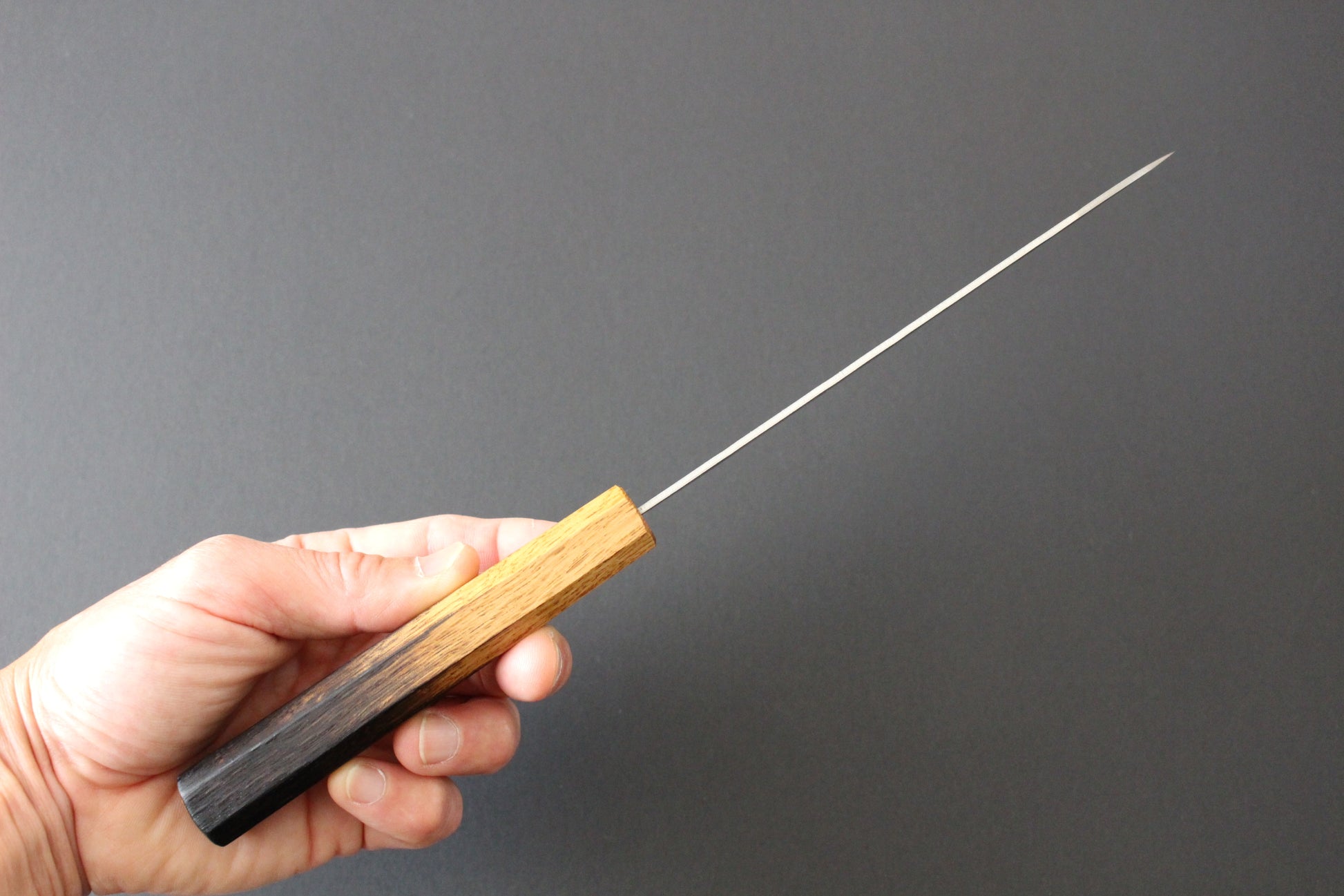 Gingami No.3 (Silver Paper No3, Ginsan) is a stainless steel developed by Hitachi Special Stainless Steel. It is a very fine and pure steel for making knives. It has excellent hardness, durability and Rust/ corrosion resistance. Gingami No.3 gets a very sharp edge and it has good edge retention similar to Carbon Steel. It can be easy to resharpen this steel.