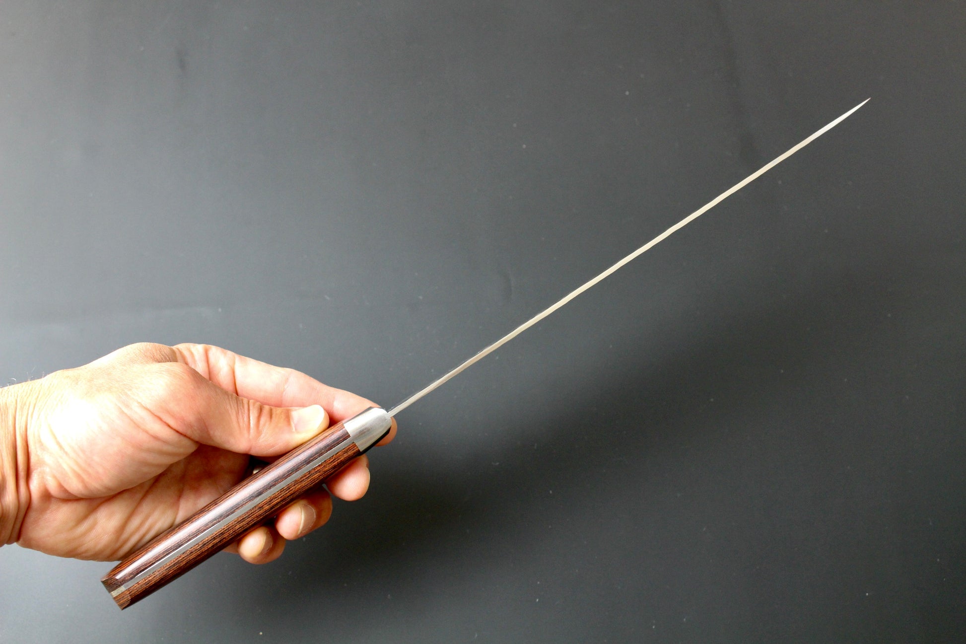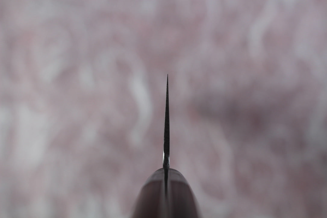 Gyuto Chef knife is the ultimate all-purpose knife for use in your home and commercial kitchens. It can be used for cutting, chopping, slicing, dicing, filleting meat, vegetables and fish. Gyuto knife does pretty much most of the jobs in a kitchen by itself. Gyuto can range from 180mm to 270mm usually. The most popular for home use is 180mm or 210mm as this gives the best balance of length and weight for small spaces and 240mm is more common in commercial kitchens.