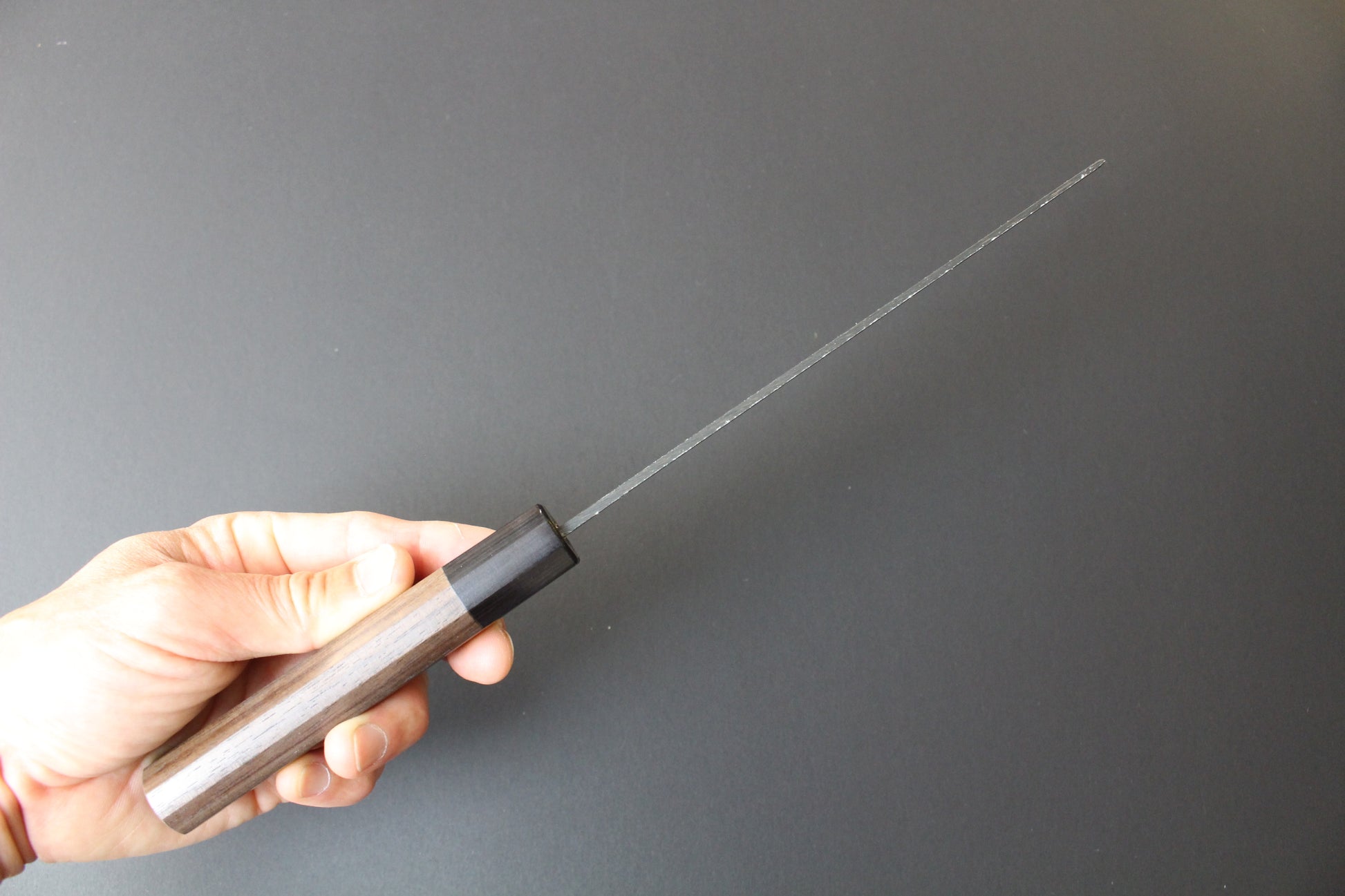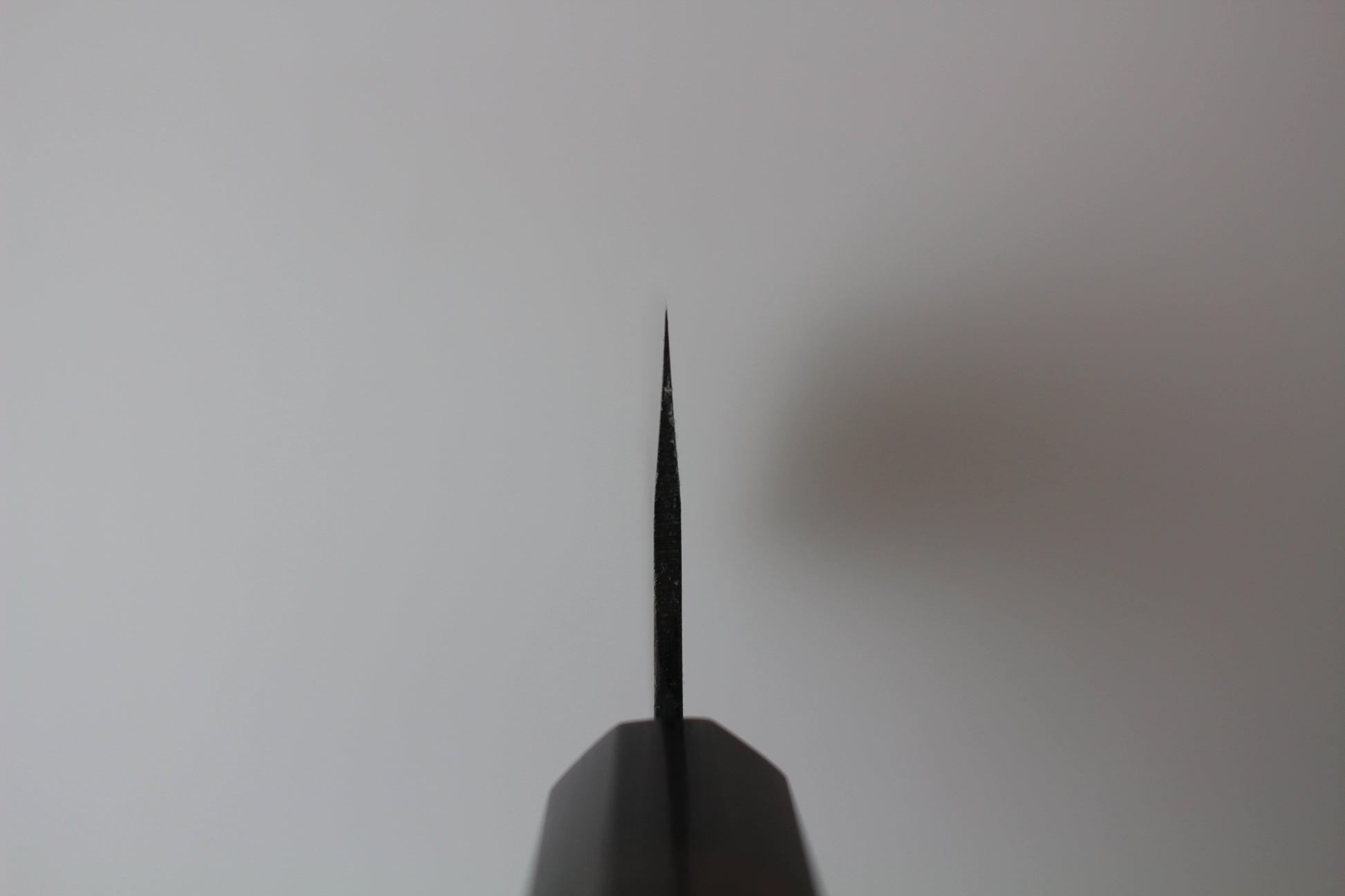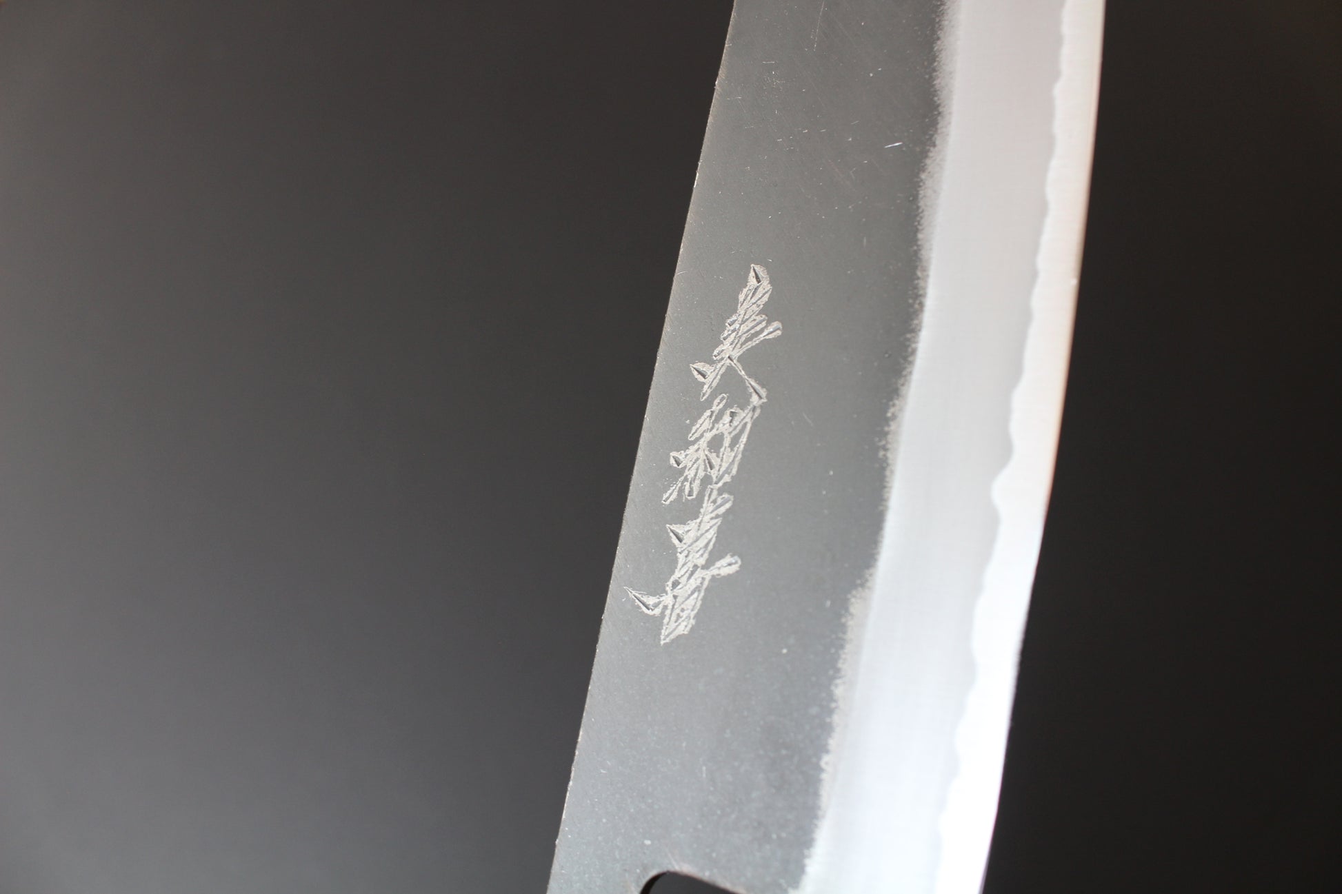 White Steel No.2 is a high carbon steel developed by Hitachi Special Stainless Steel. This steel is standard and most commonly used for Japanese style knives such as Sashimi and Deba knife for long time. White Steel No.2 gives a very sharp edge and has very good edge retention. It is also very easy to re-sharpen. It will rust if it is left wet or left in contact with something containing any amount of moisture, so need to wipe and dry completely after using. For longer storage protect with a film of oil to avoid lasting. Recommended for first time of Japanese style high carbon steel knife users.