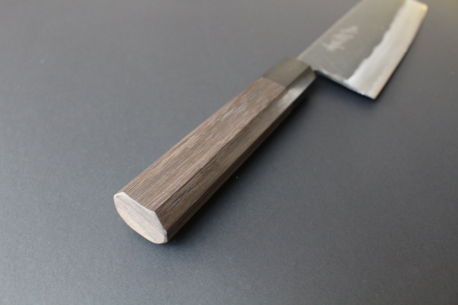 Steel Type: Shirogami No2 carbon steel core, iron steel clad Kurouchi finish