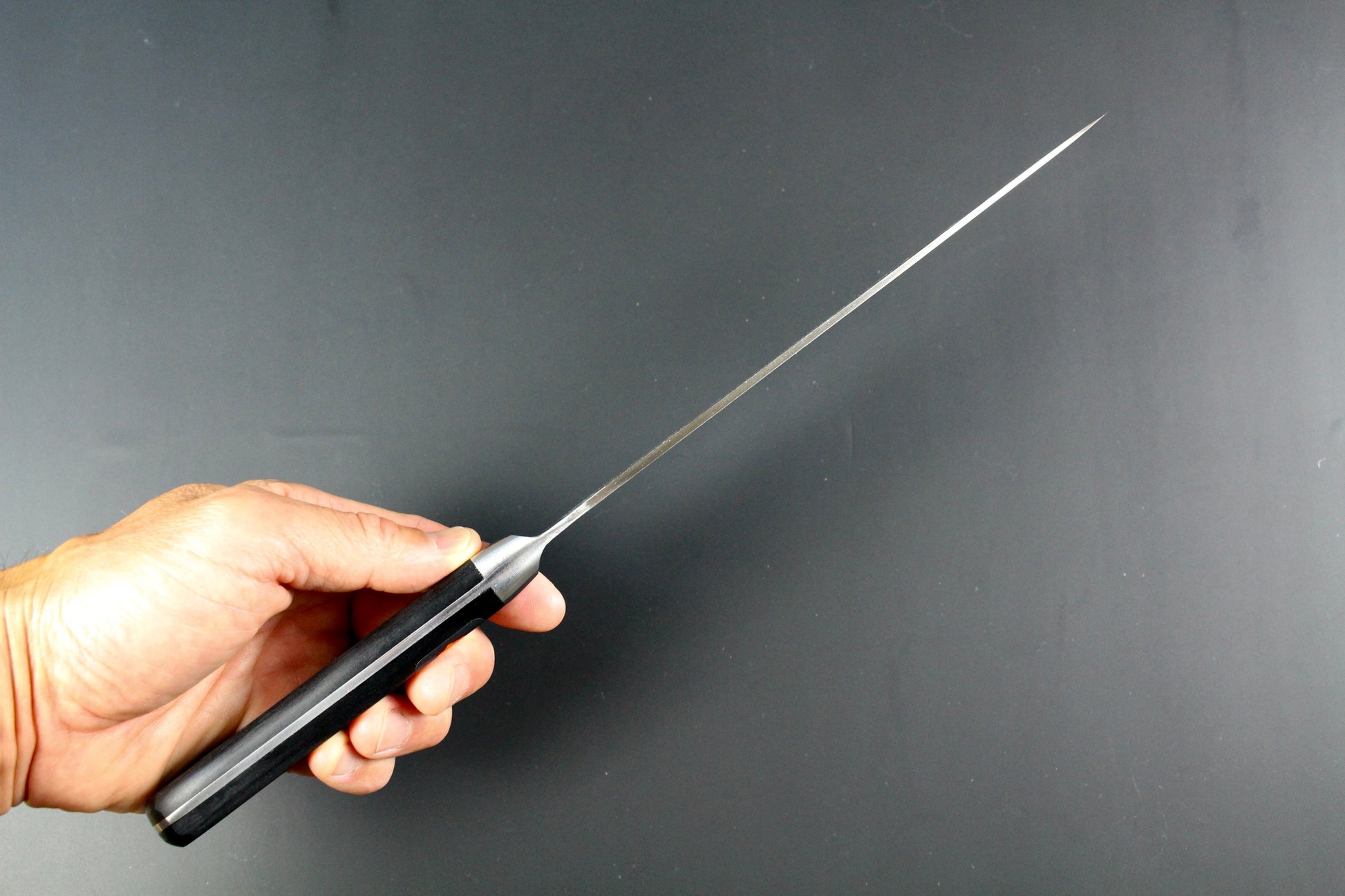Gyuto Chef knife is the ultimate all-purpose knife for use in your home and commercial kitchens. It can be used for cutting, chopping, slicing, dicing, filleting meat, vegetables and fish. Gyuto knife does pretty much most of the jobs in a kitchen by itself. Gyuto can range from 180mm to 270mm usually. The most popular for home use is 180mm or 210mm as this gives the best balance of length and weight for small spaces and 240mm is more common in commercial kitchens.