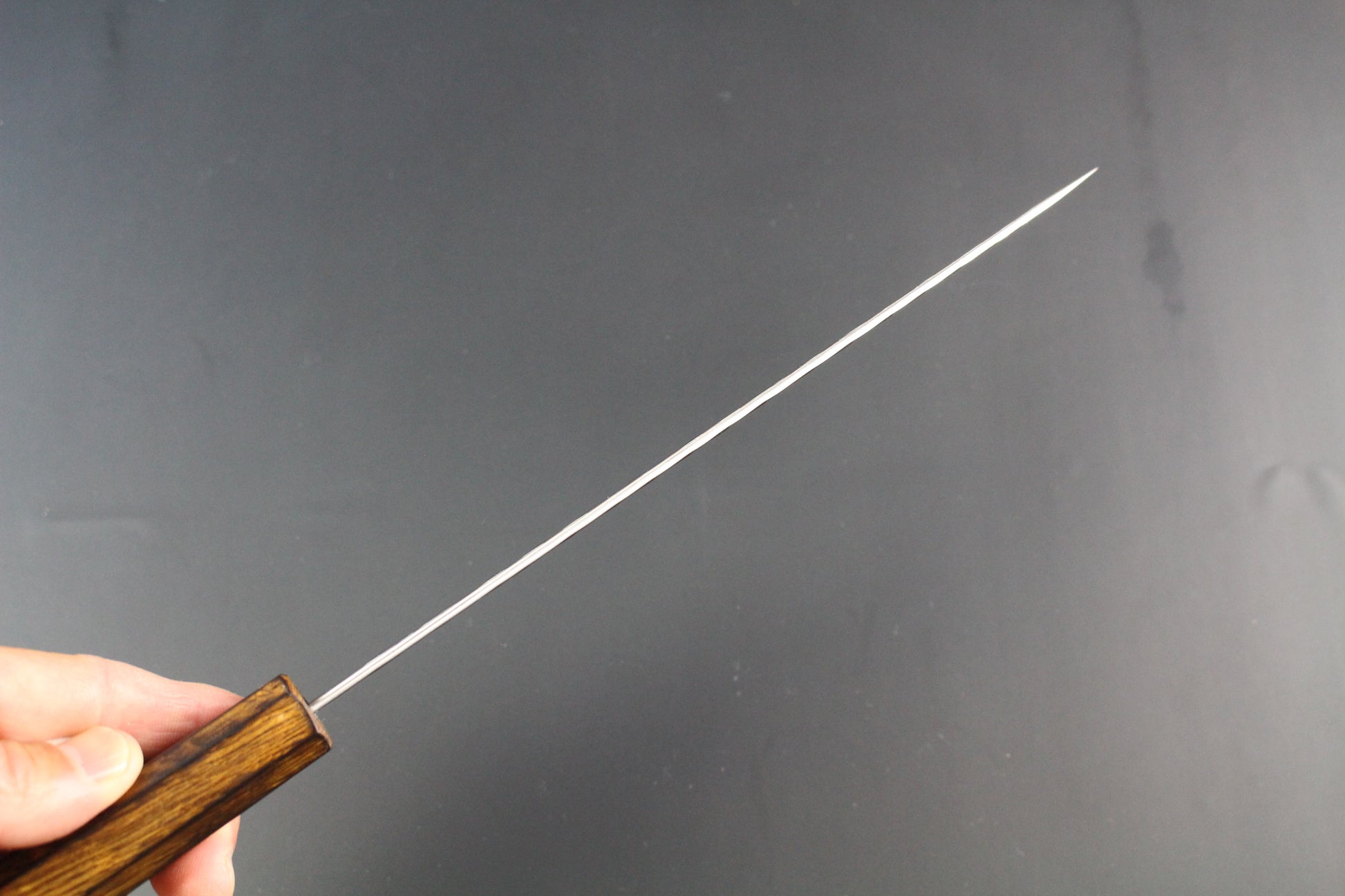 Gyuto Chef knife is the ultimate all-purpose knife for use in your home and commercial kitchens. It can be used for cutting, chopping, slicing, dicing, filleting meat, vegetables and fish. Gyuto knife does pretty much most of the jobs in a kitchen by itself. Gyuto can range from 180mm to 270mm usually. The most popular for home use is 180mm or 210mm as this gives the best balance of length and weight for small spaces and 240mm is more common in commercial kitchens.