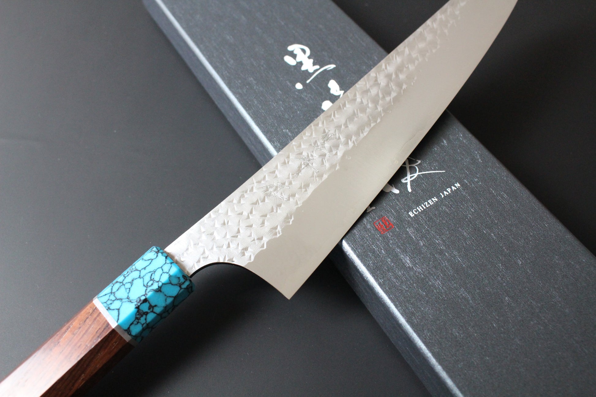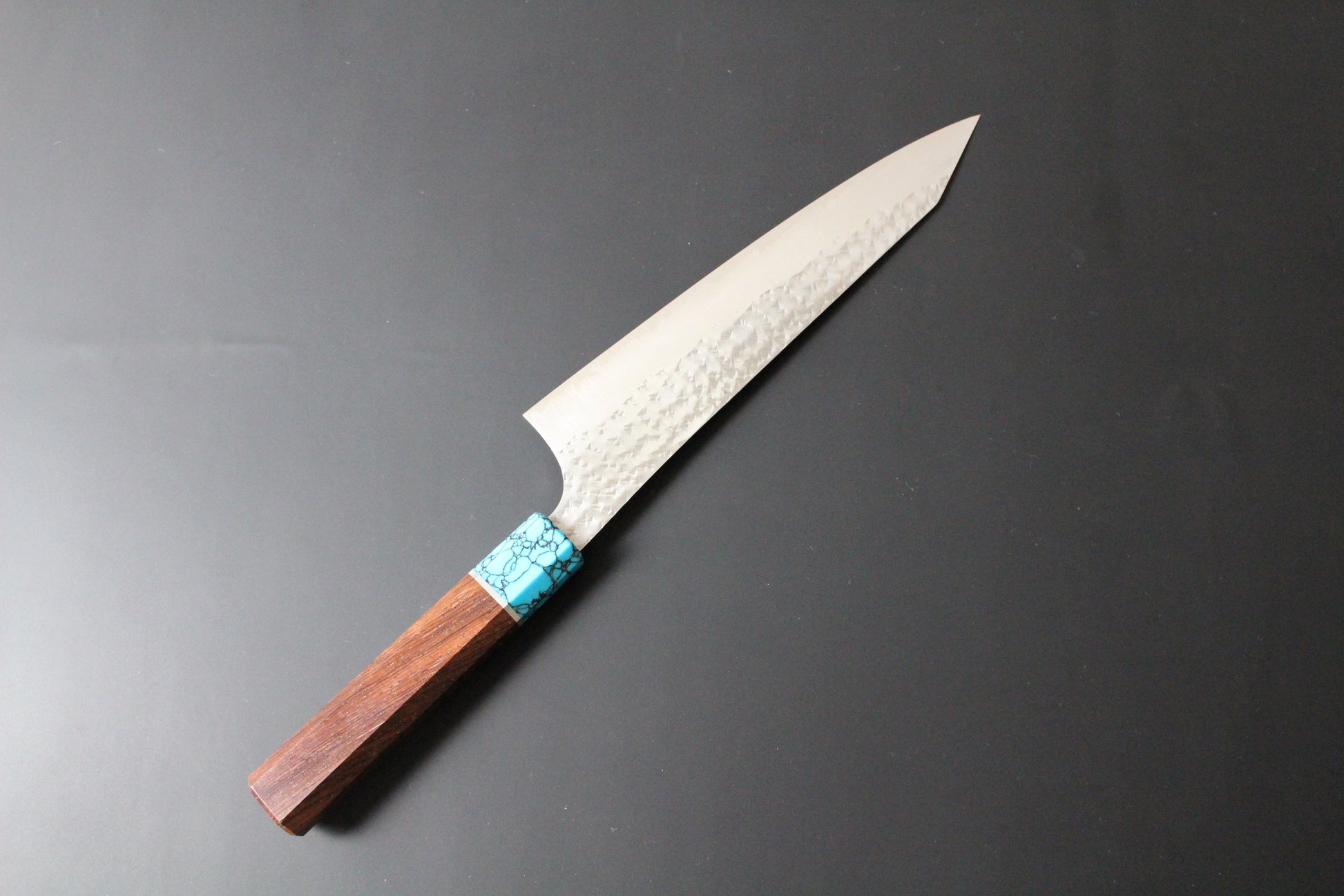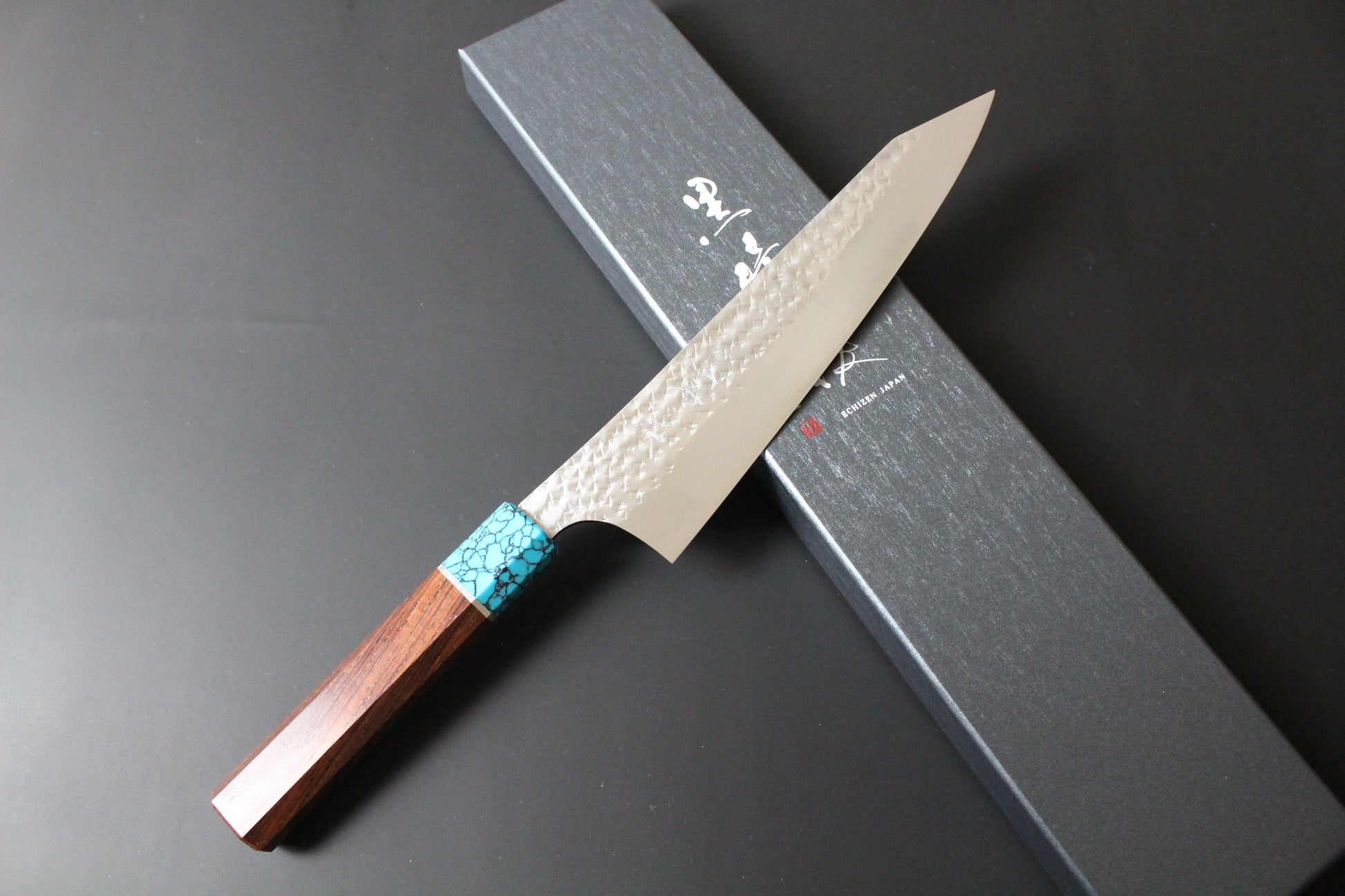 Yu Kurosaki - SG2 Hammered "Senko Ei" Gyuto Knife 210mm with Wenge handle turquoise ferrule