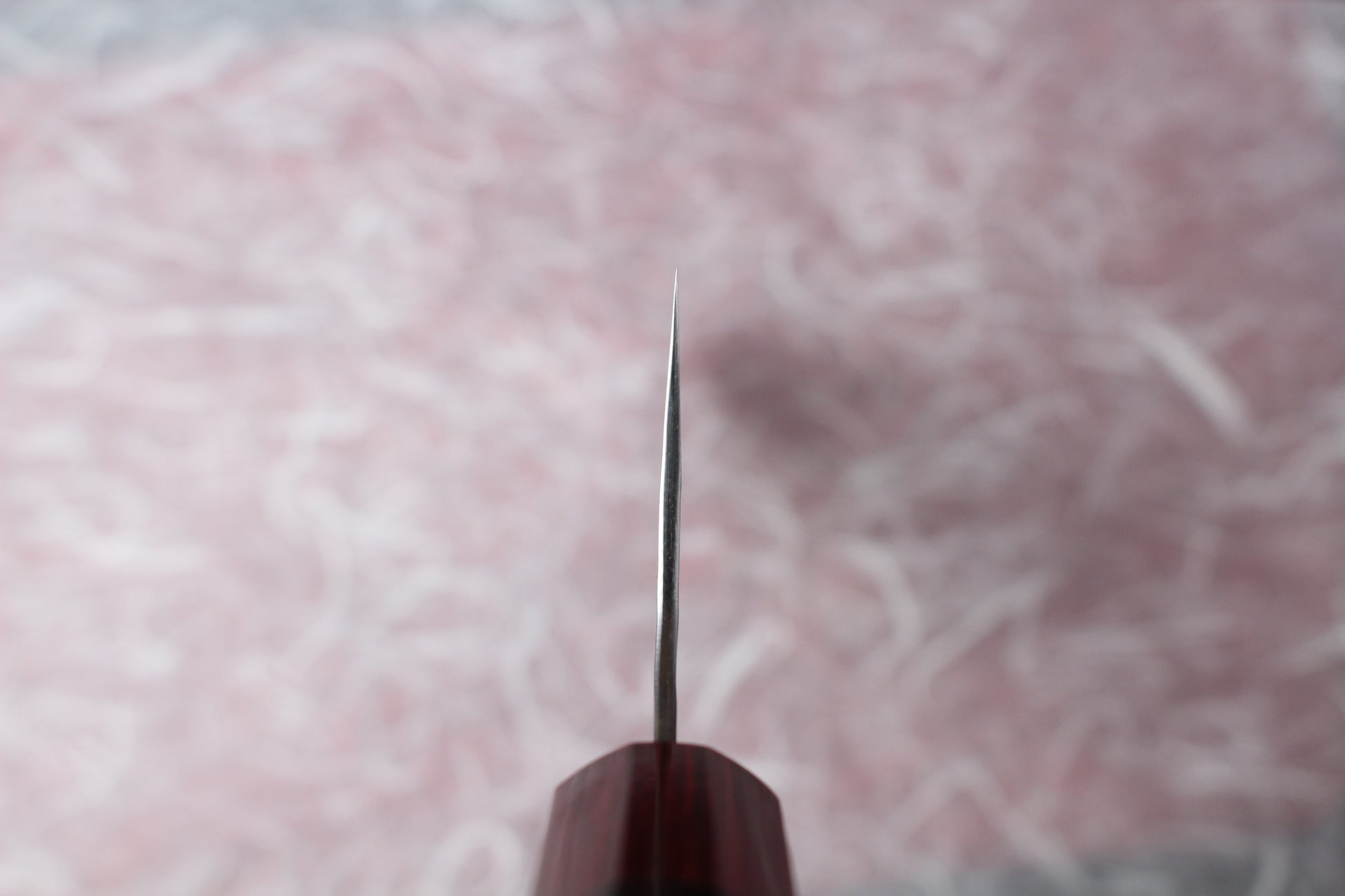 Gyuto Chef knife is the ultimate all-purpose knife for use in your home and commercial kitchens. It can be used for cutting, chopping, slicing, dicing, filleting meat, vegetables and fish. Gyuto knife does pretty much most of the jobs in a kitchen by itself. Gyuto can range from 180mm to 270mm usually. The most popular for home use is 180mm or 210mm as this gives the best balance of length and weight for small spaces and 240mm is more common in commercial kitchens.